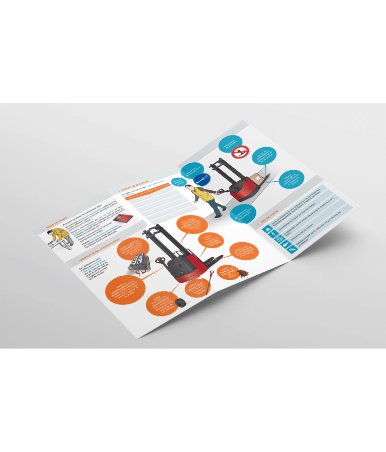 Idéal pour les recyclages de par son format compact, ce dépliants 3 volets est à distribuer aux apprenants lors de formation aux CACES R366 et R485.