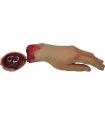 Kit main coupée : en deux parties, la simulation de moignon montée sur filet à mettre le long du poing, et la main à poser par terre.